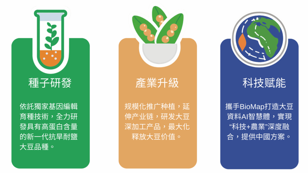 2016年,兩位香港的專家將抗旱耐鹽大豆科研成果落地甘肅試種成功,小範圍試種大獲成功,讓當地農戶真切嘗到了科技興農的甜頭。2021年,為契合國家農業現代化戰略,兩位專家攜手丁午壽先生和馮家彬先生,成立企業將科研成果商業化,踐行家國使命。